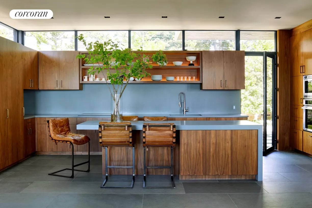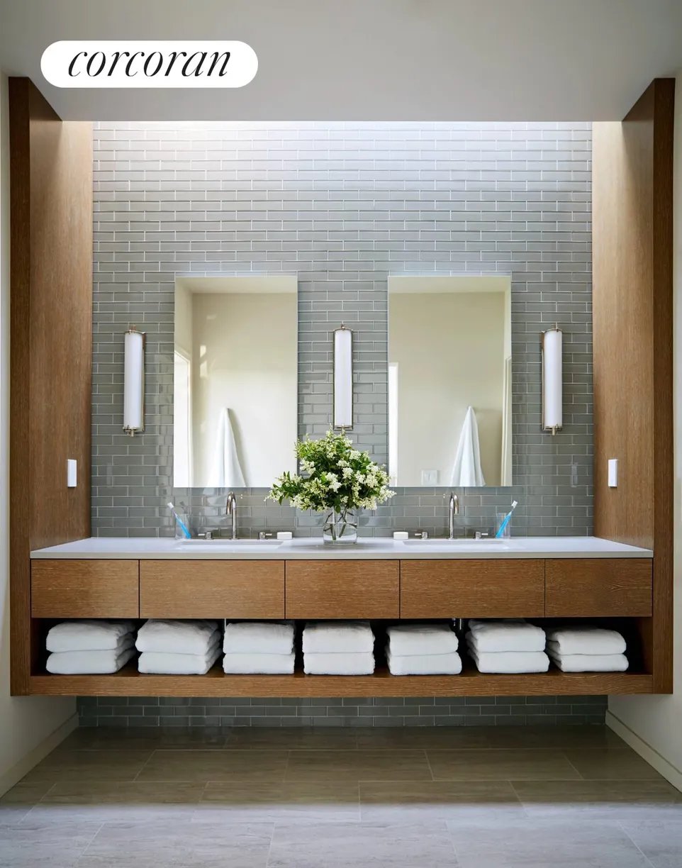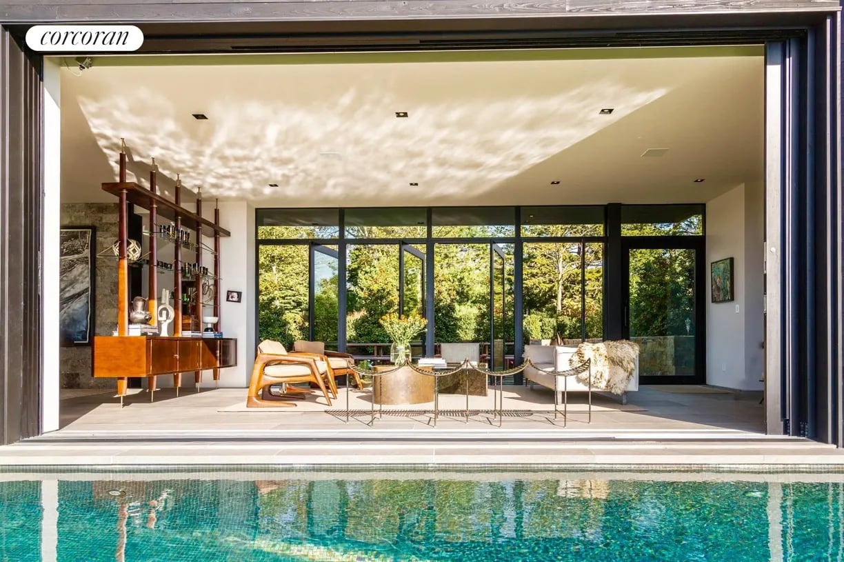 Experience breathtaking panoramic views over iconic Sag Harbor Bay, an important historic whaling port where magnificent luxury yachts now dock in summer. This award-winning waterfront contemporary home was designed by renowned Blaze Makoid Architecture to take maximum advantage of the spectacular setting, and features floor to ceiling windows and doors by Fleetwood throughout, which present the sublime views. Completed in 2017, with five en-suite bedrooms, the home on a full acre is sleek and contemporary with clean lines softened by custom textural elements of wood and stone. Elegant yet comfortable open interiors provide beautiful spaces for entertaining or quiet relaxation. Open wide the pivot glass doors on the front of the home and retractable glass walls in the living and dining rooms to merge indoors and out. The well equipped eat-in kitchen has seating at the quartz-topped island and opens to a rear patio with outdoor seating and dining areas. Another outdoor lounge overlooks the heated gunite pool and the water beyond. All the bedrooms and baths, including two master suites, are impeccably finished and appointed. Enjoy your own 30' dock and two residents only association beaches. Secluded and private, the home is also just minutes to Sag Harbor Village restaurants, shops and historic and cultural destinations. Broker/Owner.