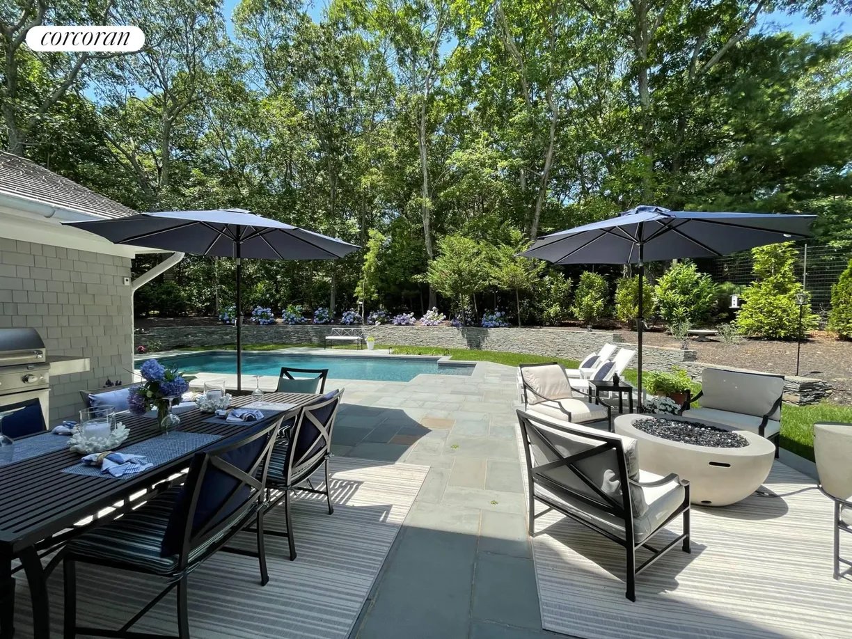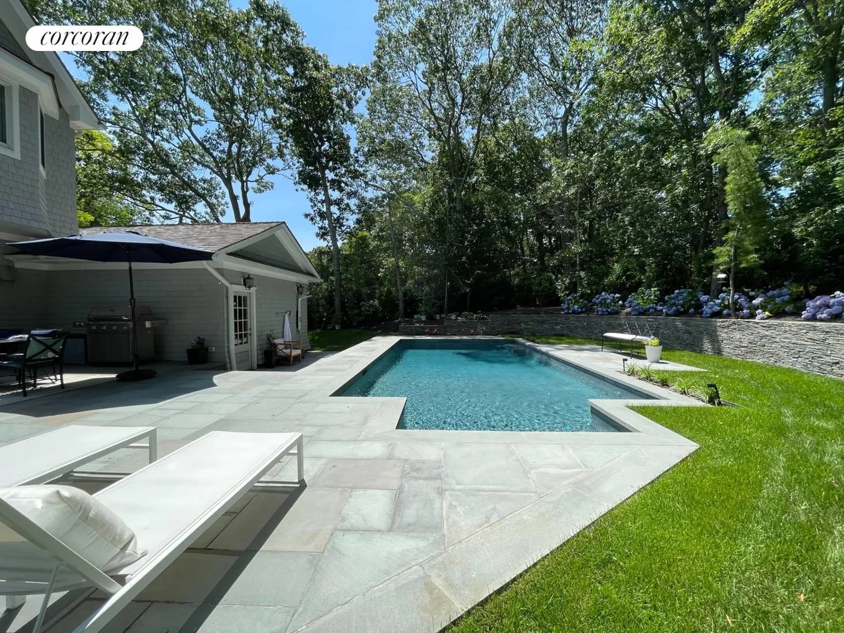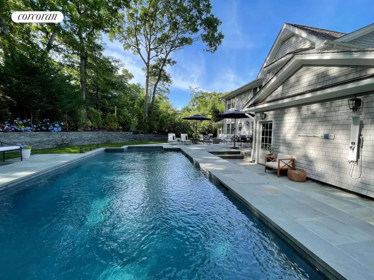 This beautifully designed, recently constructed Hamptons traditional offers 5 bedrooms, 4 bathrooms, and over 4,000 sq. ft. of elegant living space set in a quiet neighborhood directly across the street from Three Mile Harbor. An open-concept great room flows seamlessly into the dining area and a spacious gourmet kitchen, fully outfitted with top-of-the-line Wolf and Sub-Zero appliances - perfect for entertaining and everyday living. A vaulted sunroom with a gas fireplace provides a cozy retreat for reading or relaxing year-round. Step outside to a private backyard oasis featuring a heated gunite pool, expansive bluestone patios, lush landscaping, an outdoor shower, a professional grade grill, and a fire pit ideal for cool Hamptons evenings. Just minutes from ocean beaches and East Hampton Village with it's renowned shopping and dining, this home also offers unique water access where one can launch their paddle board or kayak from the harbor path across the street. [[Rental Registration # 25-795]]