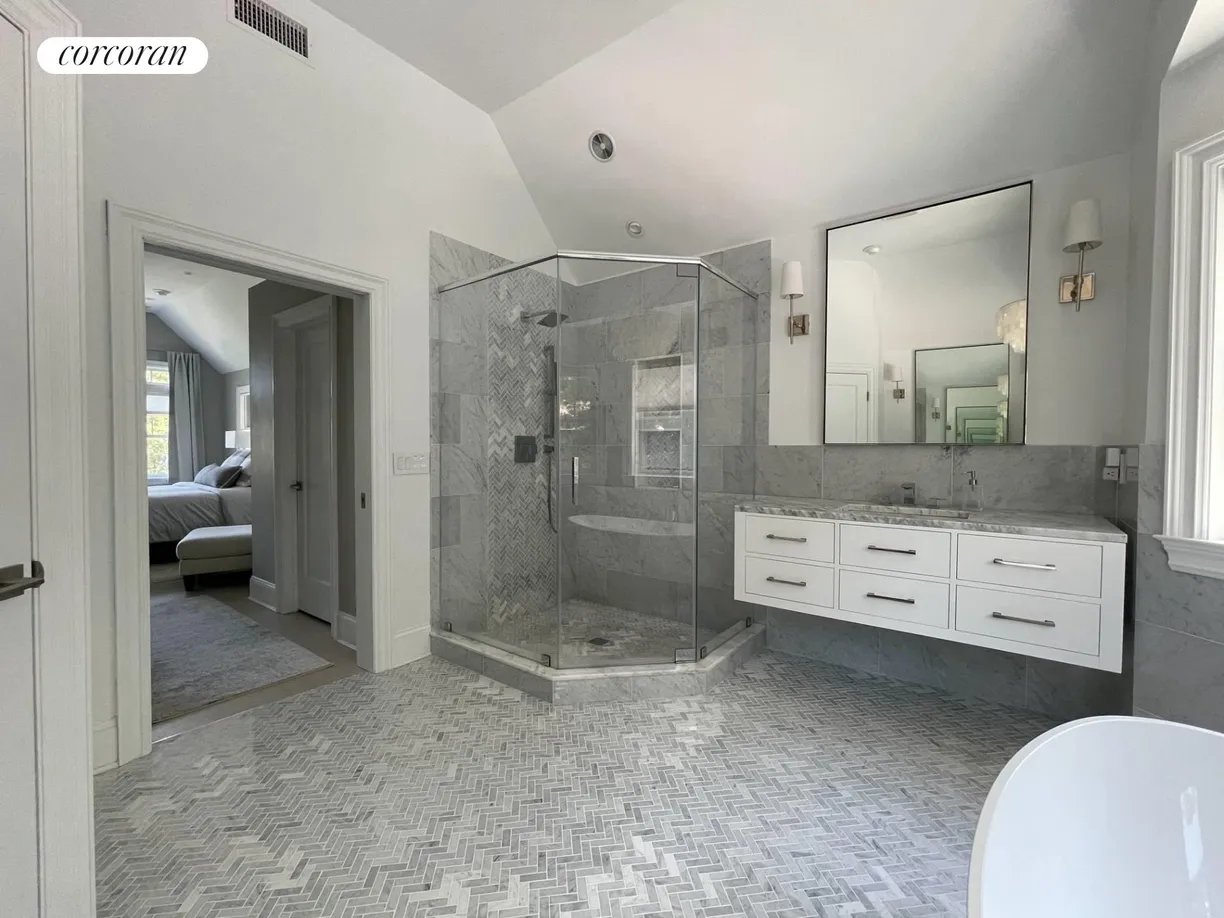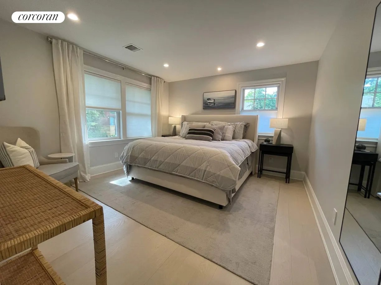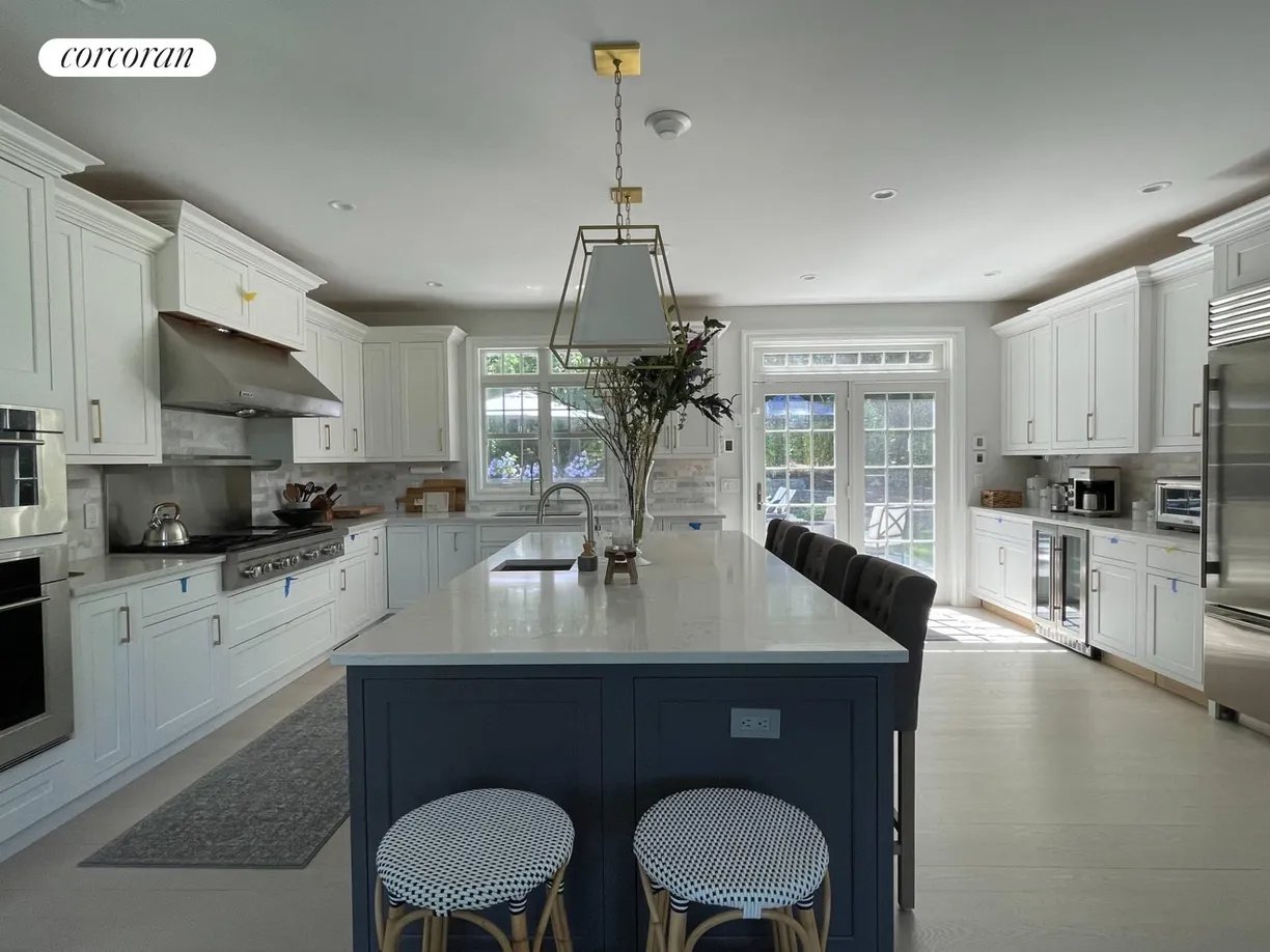 This beautifully designed, recently constructed Hamptons traditional offers 5 bedrooms, 4 bathrooms, and over 4,000 sq. ft. of elegant living space set in a quiet neighborhood directly across the street from Three Mile Harbor. An open-concept great room flows seamlessly into the dining area and a spacious gourmet kitchen, fully outfitted with top-of-the-line Wolf and Sub-Zero appliances - perfect for entertaining and everyday living. A vaulted sunroom with a gas fireplace provides a cozy retreat for reading or relaxing year-round. Step outside to a private backyard oasis featuring a heated gunite pool, expansive bluestone patios, lush landscaping, an outdoor shower, a professional grade grill, and a fire pit ideal for cool Hamptons evenings. Just minutes from ocean beaches and East Hampton Village with it's renowned shopping and dining, this home also offers unique water access where one can launch their paddle board or kayak from the harbor path across the street. [[Rental Registration # 25-795]]