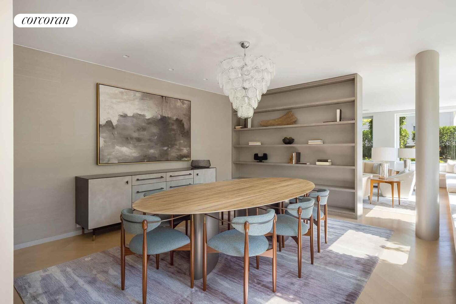 Step off your private elevator into a gracious foyer leading to a dramatic great room with a gas-burning fireplace and custom Zebrawood wet bar. Oversized casement windows and built-in window benches fill the home with natural light and greenery. The formal dining room, ideal for both intimate dinners and larger gatherings, flows seamlessly into an expansive living space and a chef-grade kitchen.