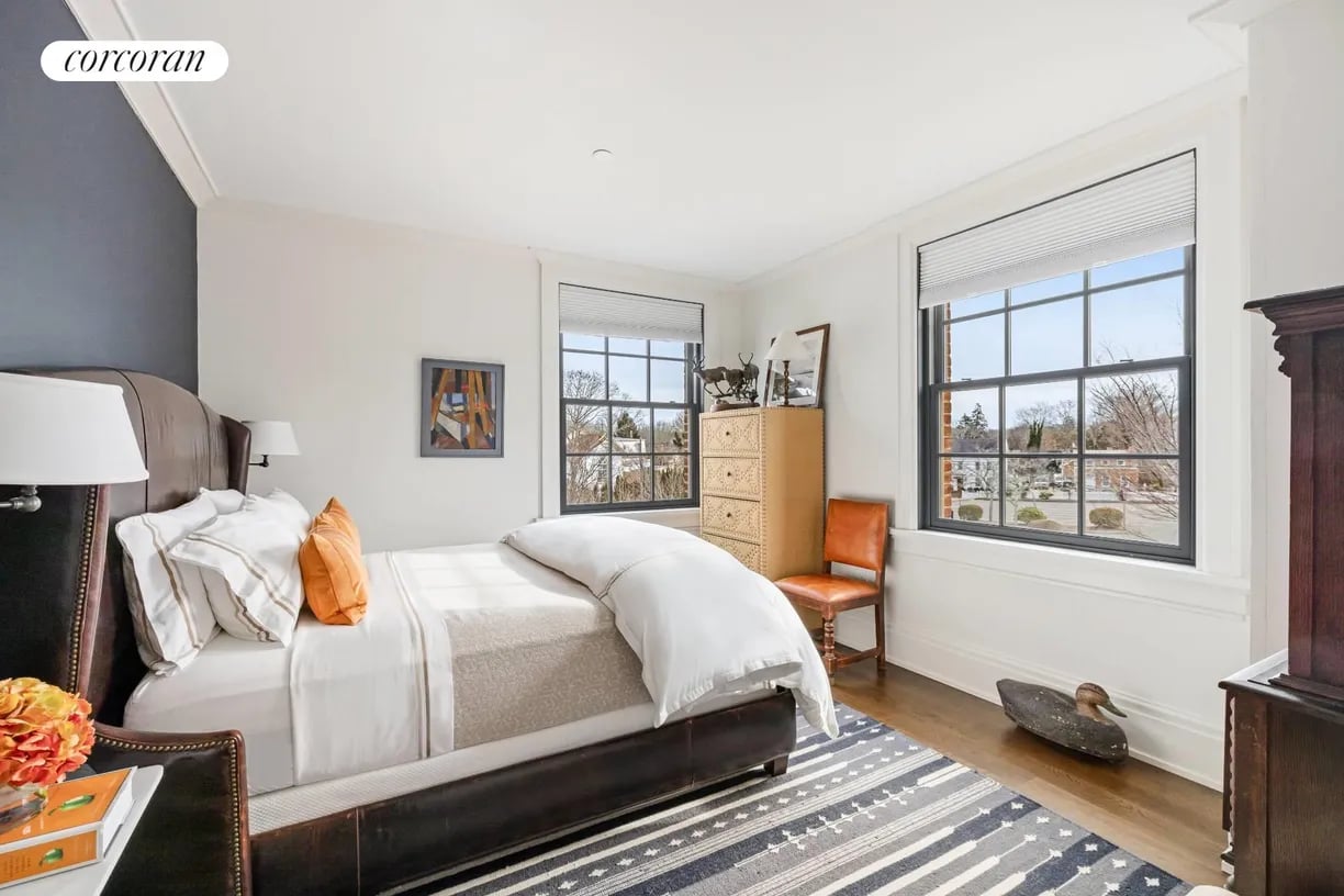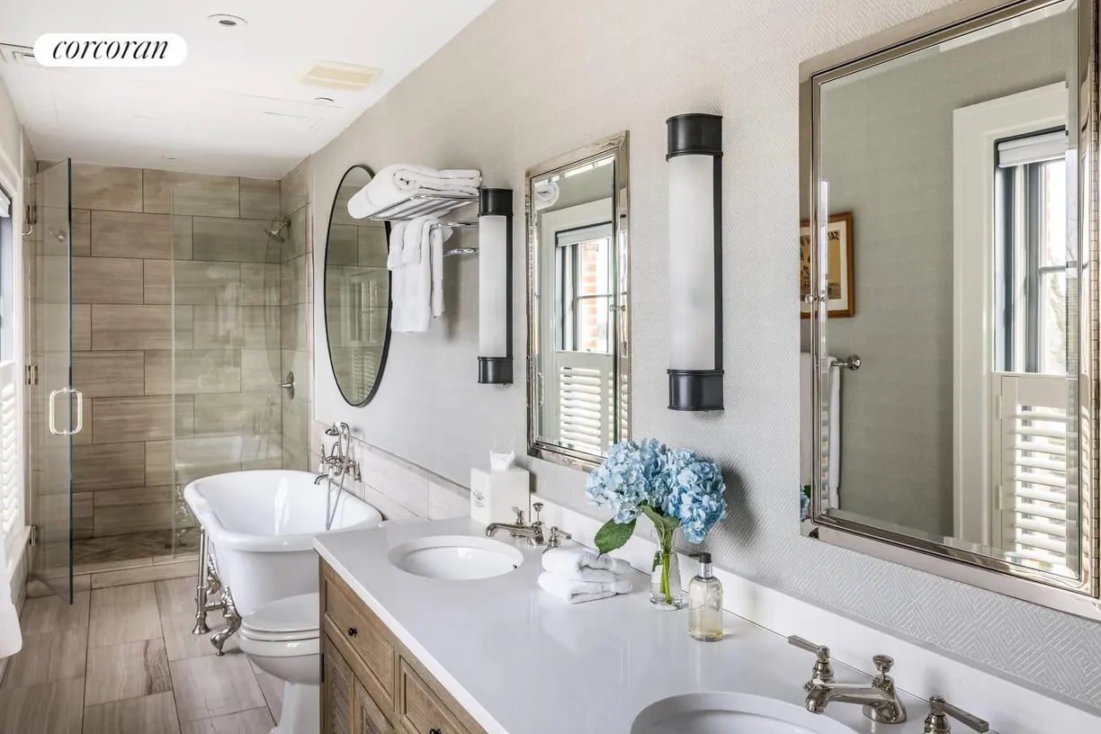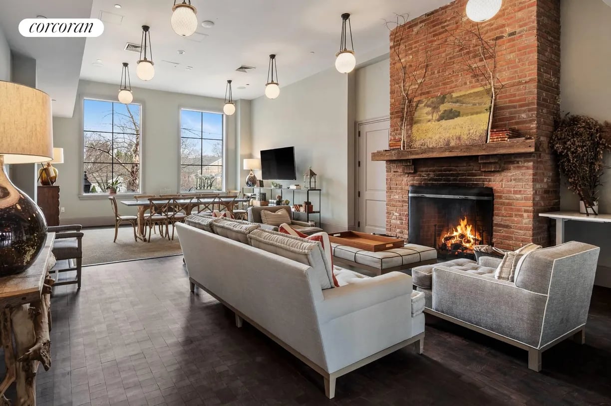 Townhouse 43 at the iconic Watchcase Factory offers a rare opportunity to enjoy four-story townhouse living with the ease of full-service amenities in the heart of Sag Harbor Village. Completely renovated in 2022, this sun-filled residence is ideal for a refined summer escape. Spanning approximately 4,800+/- square feet, the home unfolds across multiple levels connected by a private elevator. The main living floor is designed for effortless summer living, with an open living and formal dining area, a dedicated office, powder room, and a beautifully renovated kitchen perfect for entertaining. Above, the bedroom suites provide privacy and comfort, including a serene primary level with water views and a private terrace for morning coffee or sunset unwinding. The full lower level adds exceptional flexibility, featuring a lounge and fitness area and offering direct access to a private one-car garage. Outdoor living is equally inviting, with three terraces and over 1,300+/- square feet of exterior space. Just one block from Main Street and moments from the harbor, residents enjoy concierge services, a saltwater pool, and fitness and spa amenities-delivering a turnkey Sag Harbor summer with village convenience and resort-style living.