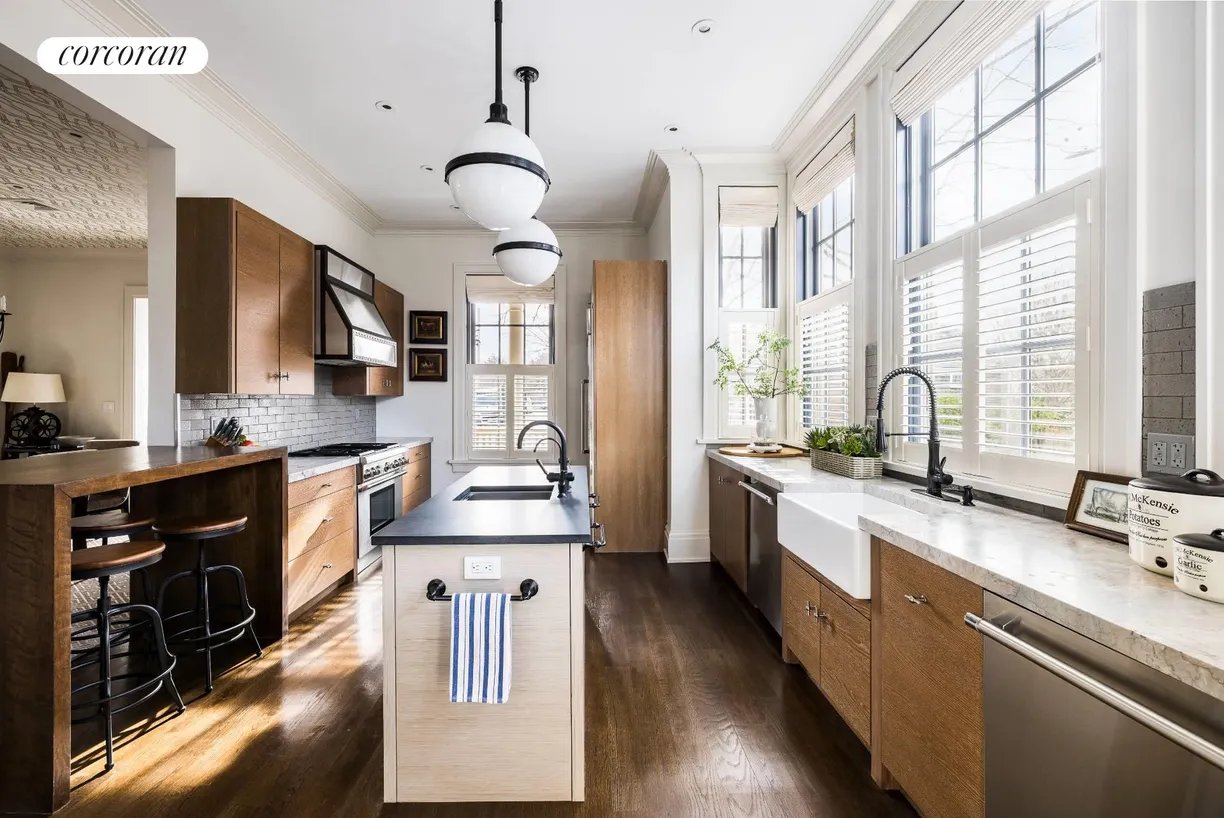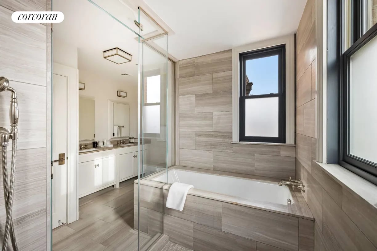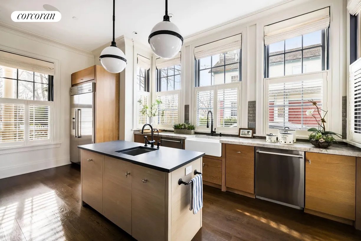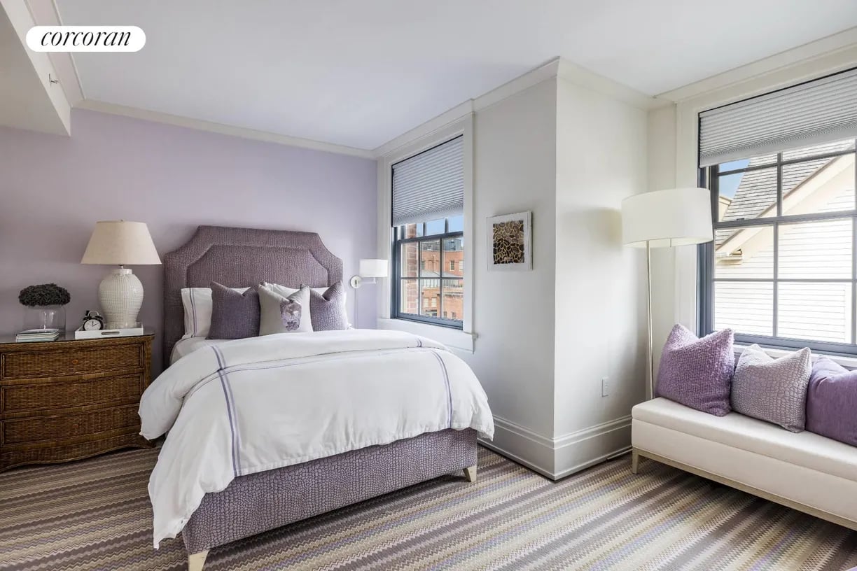 Townhouse 43 at the iconic Watchcase Factory offers a rare opportunity to enjoy four-story townhouse living with the ease of full-service amenities in the heart of Sag Harbor Village. Completely renovated in 2022, this sun-filled residence is ideal for a refined summer escape. Spanning approximately 4,800+/- square feet, the home unfolds across multiple levels connected by a private elevator. The main living floor is designed for effortless summer living, with an open living and formal dining area, a dedicated office, powder room, and a beautifully renovated kitchen perfect for entertaining. Above, the bedroom suites provide privacy and comfort, including a serene primary level with water views and a private terrace for morning coffee or sunset unwinding. The full lower level adds exceptional flexibility, featuring a lounge and fitness area and offering direct access to a private one-car garage. Outdoor living is equally inviting, with three terraces and over 1,300+/- square feet of exterior space. Just one block from Main Street and moments from the harbor, residents enjoy concierge services, a saltwater pool, and fitness and spa amenities-delivering a turnkey Sag Harbor summer with village convenience and resort-style living.