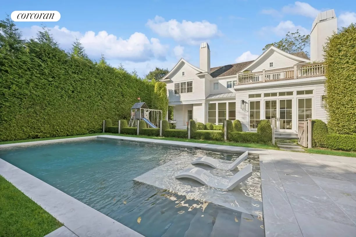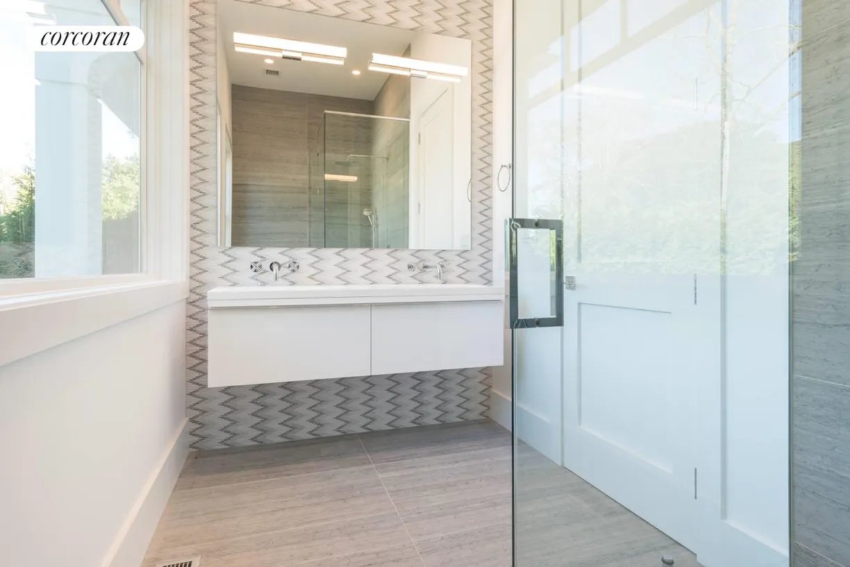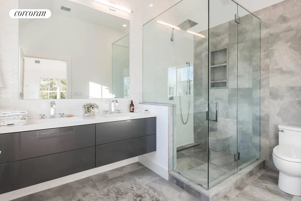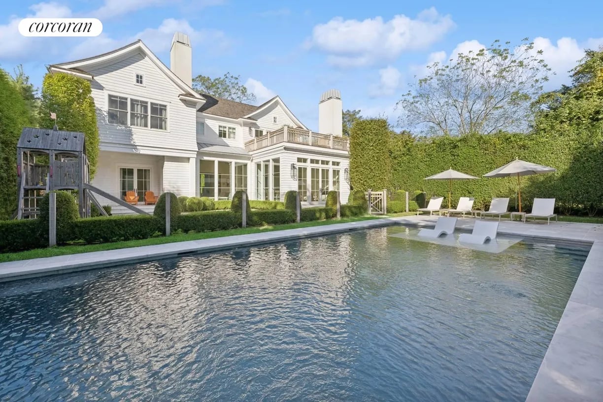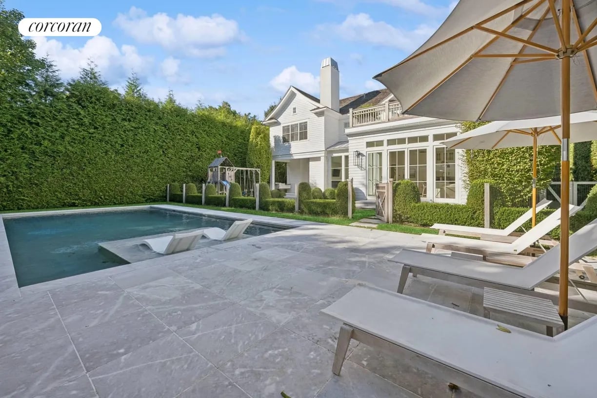 Nestled in the heart of East Hampton Village, this exquisite residence is a marriage of casual elegance and traditional design. Its clean, graceful lines and superb craftsmanship are immediately evident as you approach the home down a gently curving, crushed white marble drive. Enter into a sun drenched, open concept first floor living space with floor to ceiling, south facing windows that flood the home with glowing natural light. Flow effortlessly throughout the first level, from the living room with marble fireplace, through the chef's dine-in kitchen, into the dining room with French doors leading you out into a tranquil and stylish backyard. Completing the impeccable first floor is a junior master suite with chic marble bath and covered patio, an oversized powder room, and mudroom with separate entrance. Follow the custom floating staircase upward to the master suite with soaring ceiling, expansive private terrace with outdoor fireplace and luxurious marble bath with a floating dual vanity and frameless glass shower. Down the hall are two additional en-suite guest bedrooms with custom, marble baths and cathedral ceilings. The attention to detail continues on the light-filled lower level with a large, open media and game room, two generous bedrooms and a full bathroom. Set amidst the private back lawn, an oversized marble patio and modern cabana with pergola abut the heated gunite pool with submerged sundeck; the perfect setting for outdoor entertaining or relaxing under the sun. Venture into the Village for exceptional shopping and dining or visit the Atlantic at one of several world-class beaches, all minutes from the front door.
