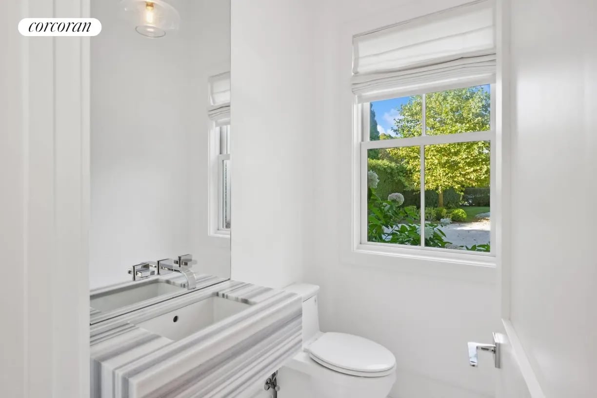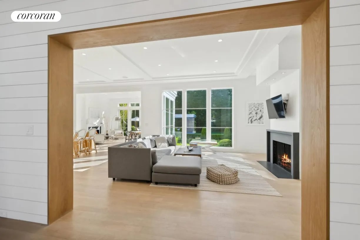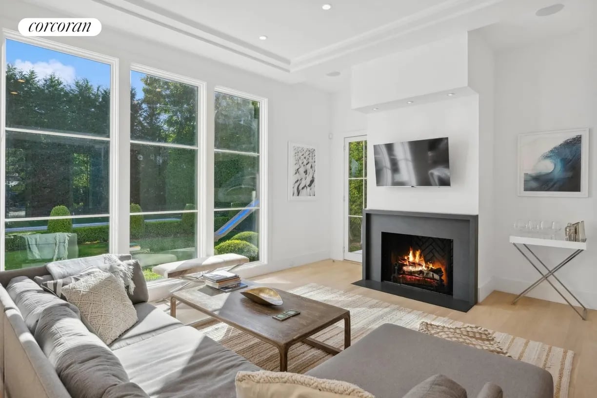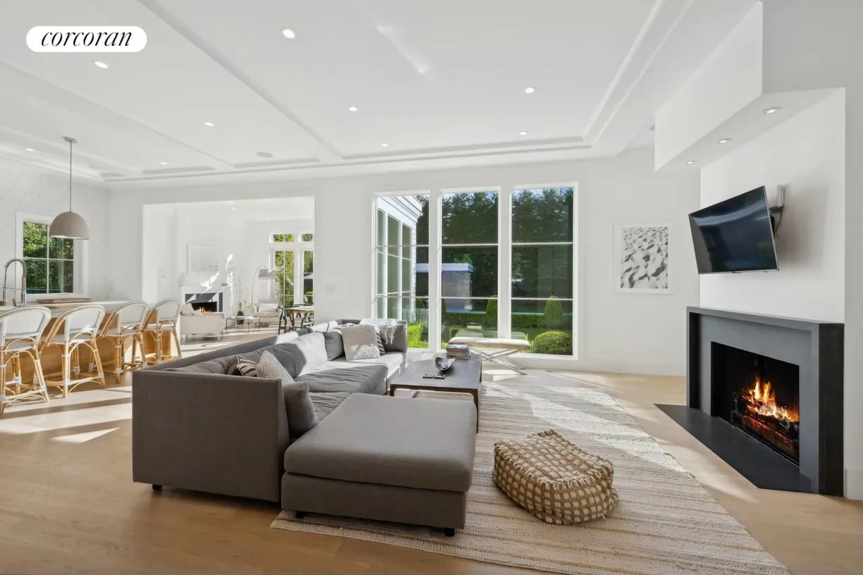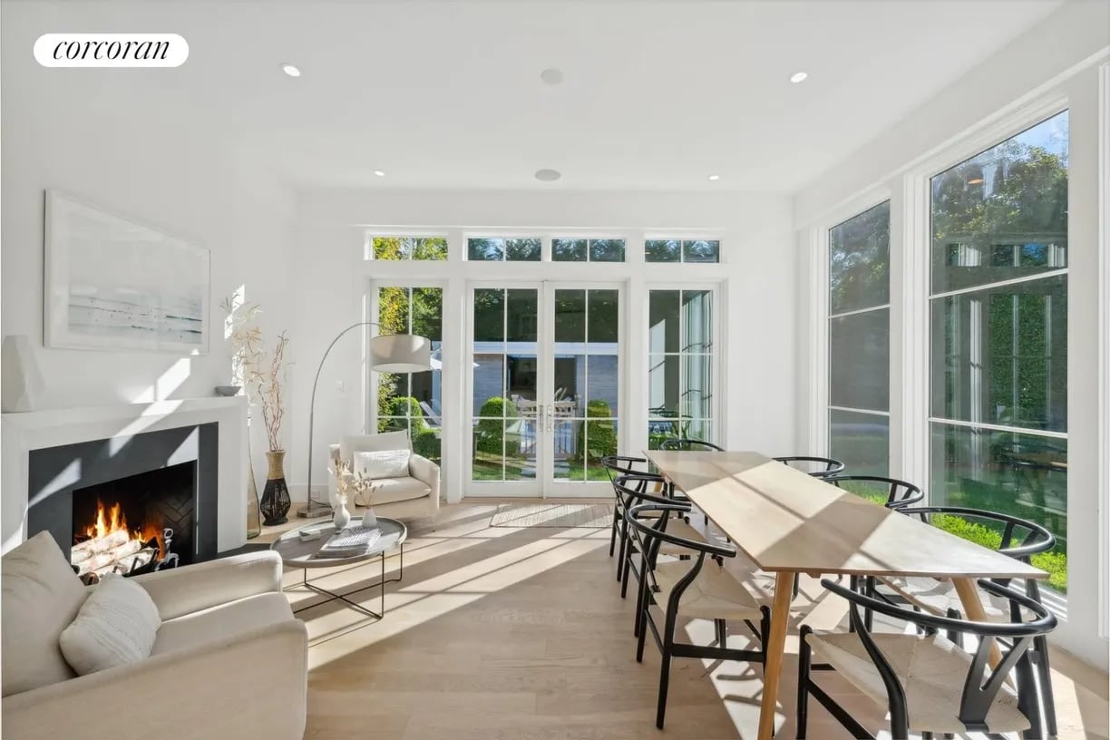 Nestled in the heart of East Hampton Village, this exquisite residence is a marriage of casual elegance and traditional design. Its clean, graceful lines and superb craftsmanship are immediately evident as you approach the home down a gently curving, crushed white marble drive. Enter into a sun drenched, open concept first floor living space with floor to ceiling, south facing windows that flood the home with glowing natural light. Flow effortlessly throughout the first level, from the living room with marble fireplace, through the chef's dine-in kitchen, into the dining room with French doors leading you out into a tranquil and stylish backyard. Completing the impeccable first floor is a junior master suite with chic marble bath and covered patio, an oversized powder room, and mudroom with separate entrance. Follow the custom floating staircase upward to the master suite with soaring ceiling, expansive private terrace with outdoor fireplace and luxurious marble bath with a floating dual vanity and frameless glass shower. Down the hall are two additional en-suite guest bedrooms with custom, marble baths and cathedral ceilings. The attention to detail continues on the light-filled lower level with a large, open media and game room, two generous bedrooms and a full bathroom. Set amidst the private back lawn, an oversized marble patio and modern cabana with pergola abut the heated gunite pool with submerged sundeck; the perfect setting for outdoor entertaining or relaxing under the sun. Venture into the Village for exceptional shopping and dining or visit the Atlantic at one of several world-class beaches, all minutes from the front door.