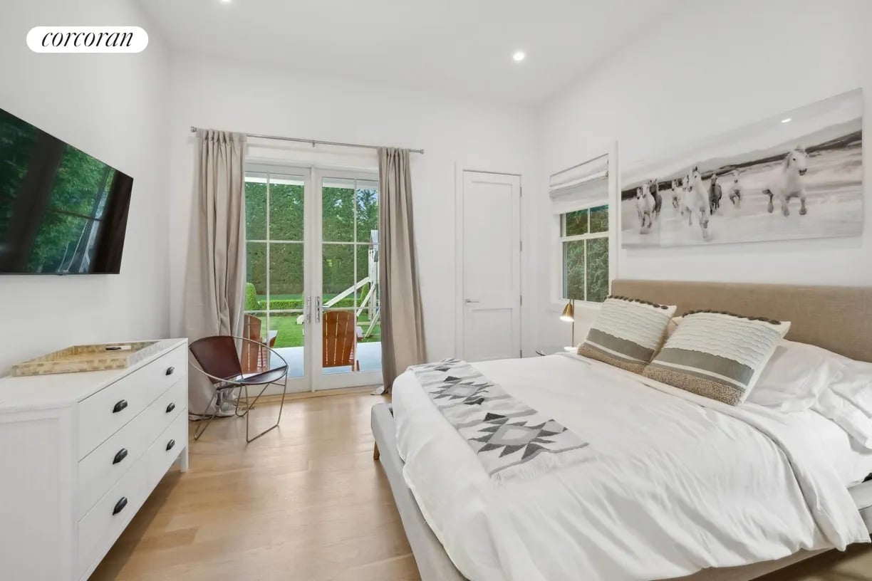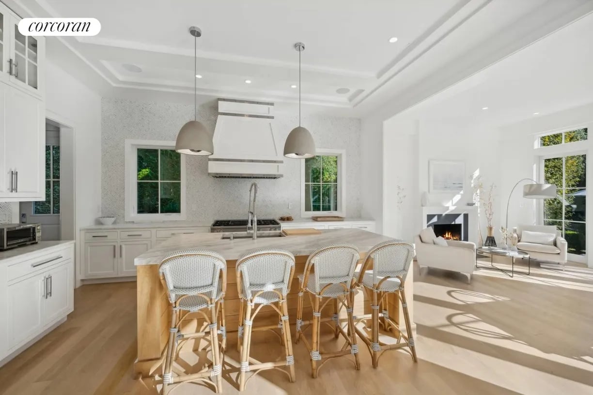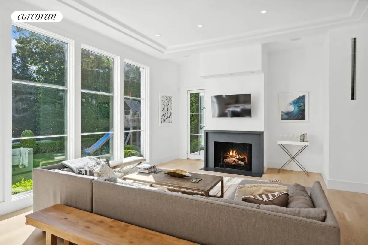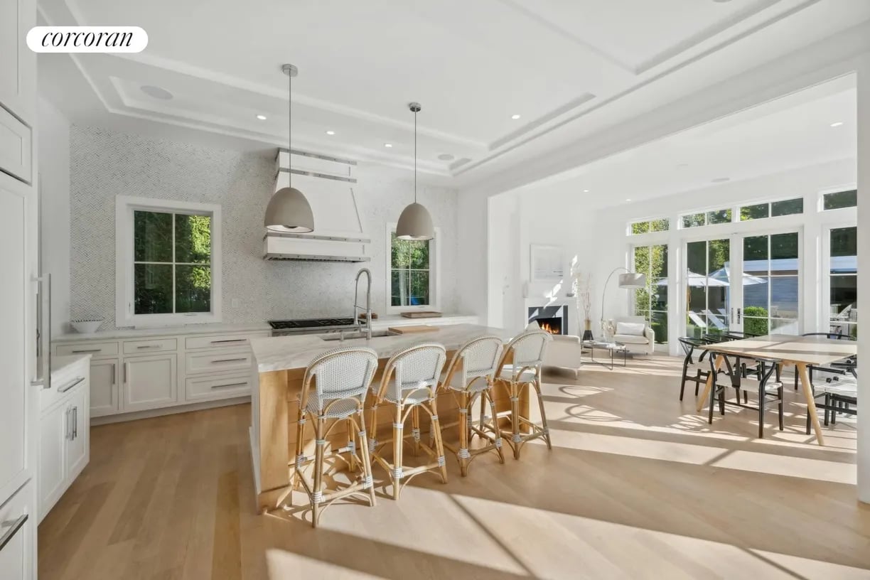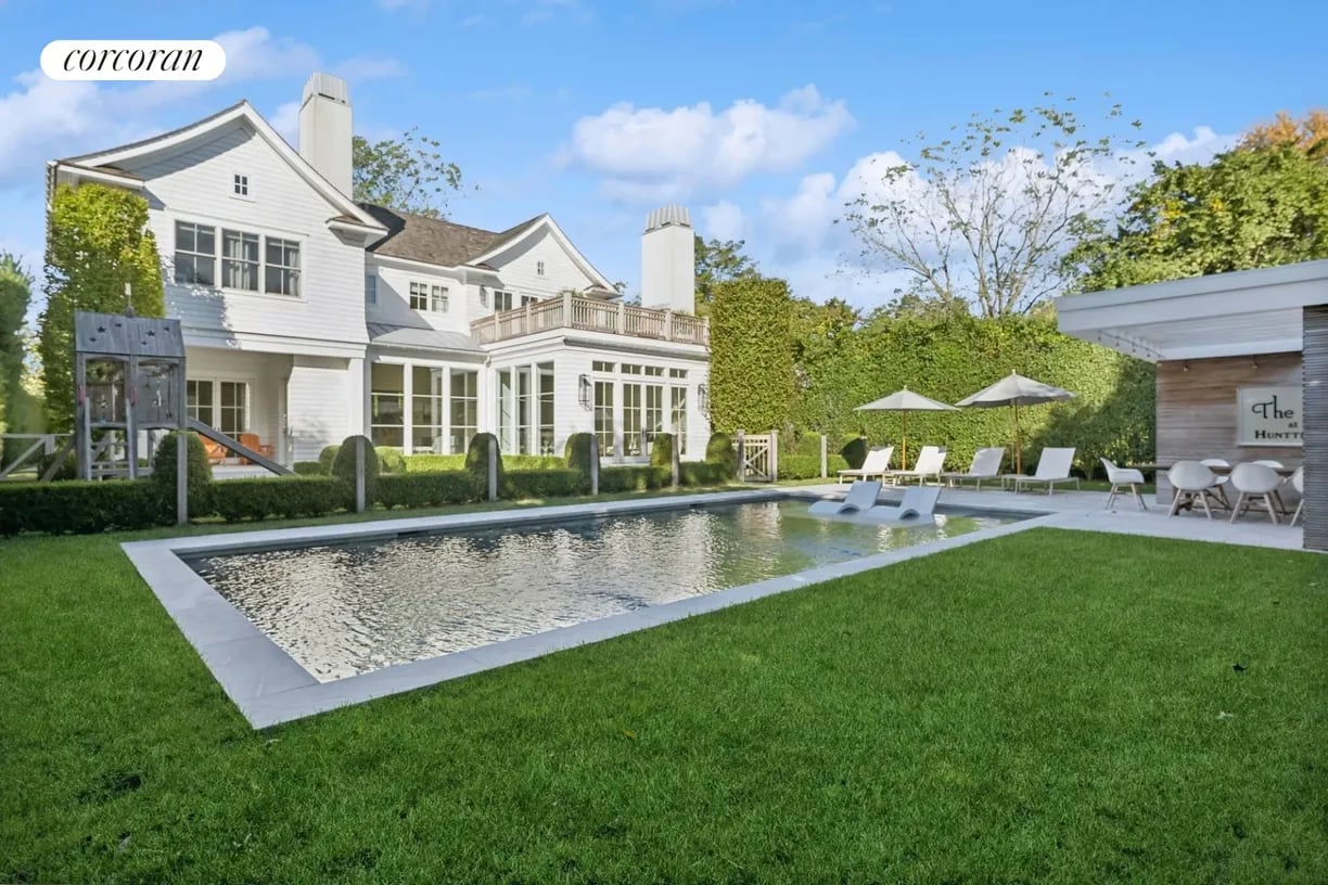 Nestled in the heart of East Hampton Village, this exquisite residence is a marriage of casual elegance and traditional design. Its clean, graceful lines and superb craftsmanship are immediately evident as you approach the home down a gently curving, crushed white marble drive. Enter into a sun drenched, open concept first floor living space with floor to ceiling, south facing windows that flood the home with glowing natural light. Flow effortlessly throughout the first level, from the living room with marble fireplace, through the chef's dine-in kitchen, into the dining room with French doors leading you out into a tranquil and stylish backyard. Completing the impeccable first floor is a junior master suite with chic marble bath and covered patio, an oversized powder room, and mudroom with separate entrance. Follow the custom floating staircase upward to the master suite with soaring ceiling, expansive private terrace with outdoor fireplace and luxurious marble bath with a floating dual vanity and frameless glass shower. Down the hall are two additional en-suite guest bedrooms with custom, marble baths and cathedral ceilings. The attention to detail continues on the light-filled lower level with a large, open media and game room, two generous bedrooms and a full bathroom. Set amidst the private back lawn, an oversized marble patio and modern cabana with pergola abut the heated gunite pool with submerged sundeck; the perfect setting for outdoor entertaining or relaxing under the sun. Venture into the Village for exceptional shopping and dining or visit the Atlantic at one of several world-class beaches, all minutes from the front door.